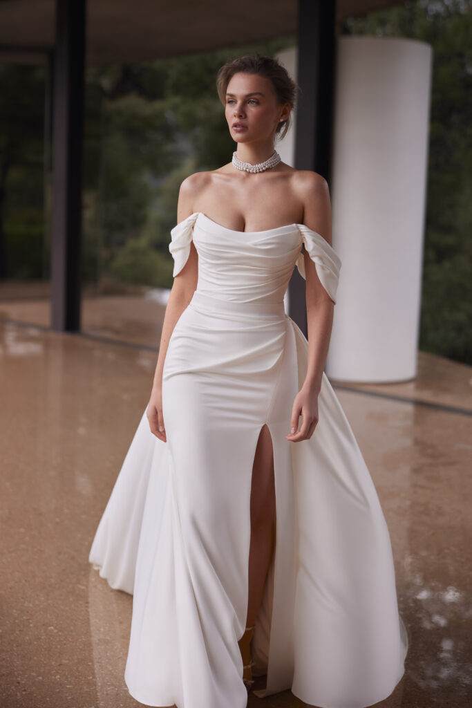 The Eva Lendel collection embodies a diverse array of styles, making every bride’s dream a reality. From timeless, romantic designs to bold, avant-garde creations, the spectrum of bridal wear was redefined. Whether brides are seeking a classic, flowing gown, an eye-catching mermaid silhouette, or something completely modern like a chic mini dress or jumpsuit, the collections offered endless possibilities.
